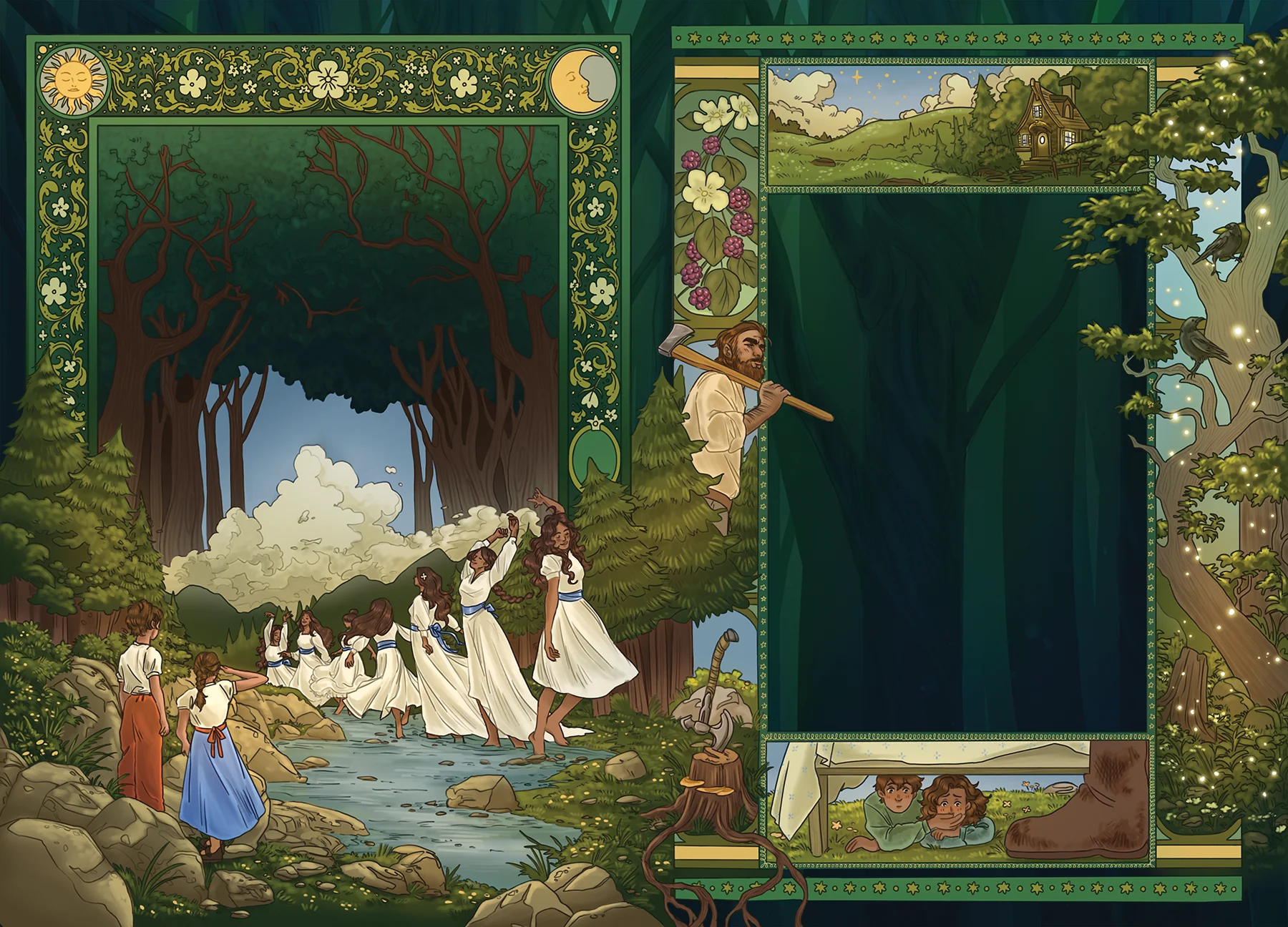 “Come into the sun,” she said. “You will both dry more easily.”